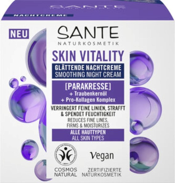 • KREM DO TWARZY NA NOC WYGŁADZAJĄCY Z PARAKRESEM, OLEJEM Z PESTEK WINOGRON I KOMPLEKSEM PRO-KOLAGENOWYM ECO 50 ml - SANTE